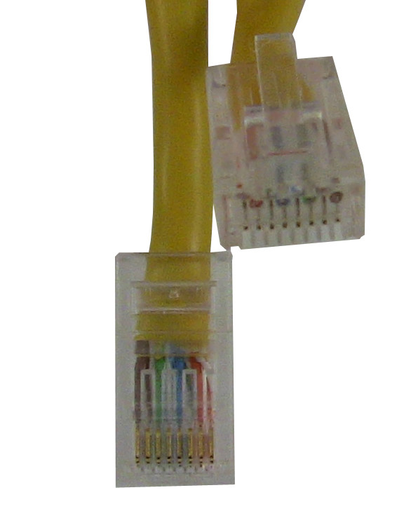 Modular Standard CAT-5E cable 2 ft, Yellow jacket with RJ45 plugs.